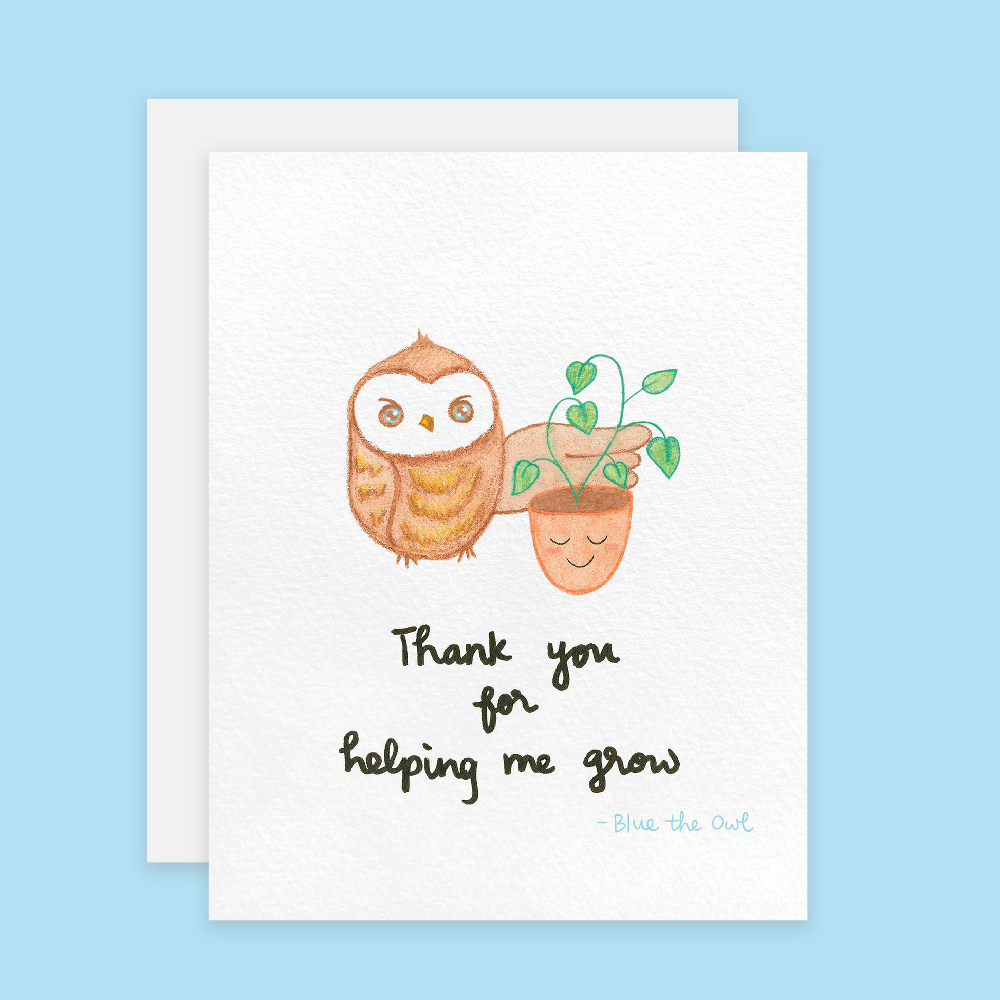 Express your gratitude to your teacher, parent or someone you feel grateful for with this cute Thank You Card, featuring Blue the Owl who loves to help her little sprouting plants grow strong and tall.